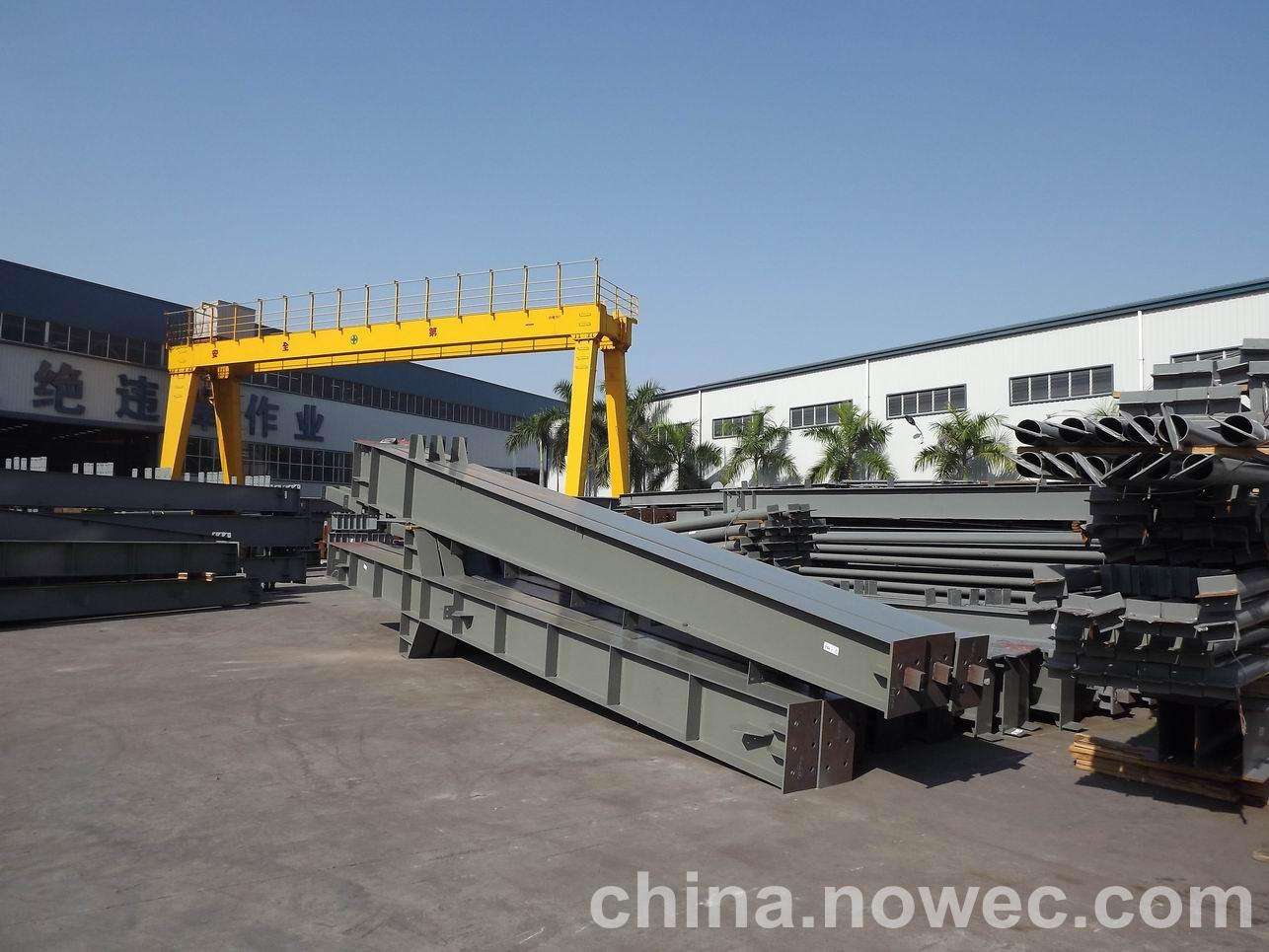条状单元一般沿长跨方向分割,其宽度约为1~3个网格,其长度为l2或l2/2(l2为短跨跨距)。块状单元一般沿丹江口网架平面纵横向分割成矩形或正方形单元。每个单元的重量以现有起重机能胜任为准。条(块)与条(块)之间可以直接拼装,也可空一网格在高空拼装。由于条(块)状单元是在地面拼装,因而高空作业量较高空散装法大为减少,拼装支架也减少很多,又能充分利用现有起重设备,故较经济。这种安装方法适用于分割后网架的钢度和受力状况改变较小的各类中小型网架,如两向正交正放四角锥、正放抽空四角锥等网架。